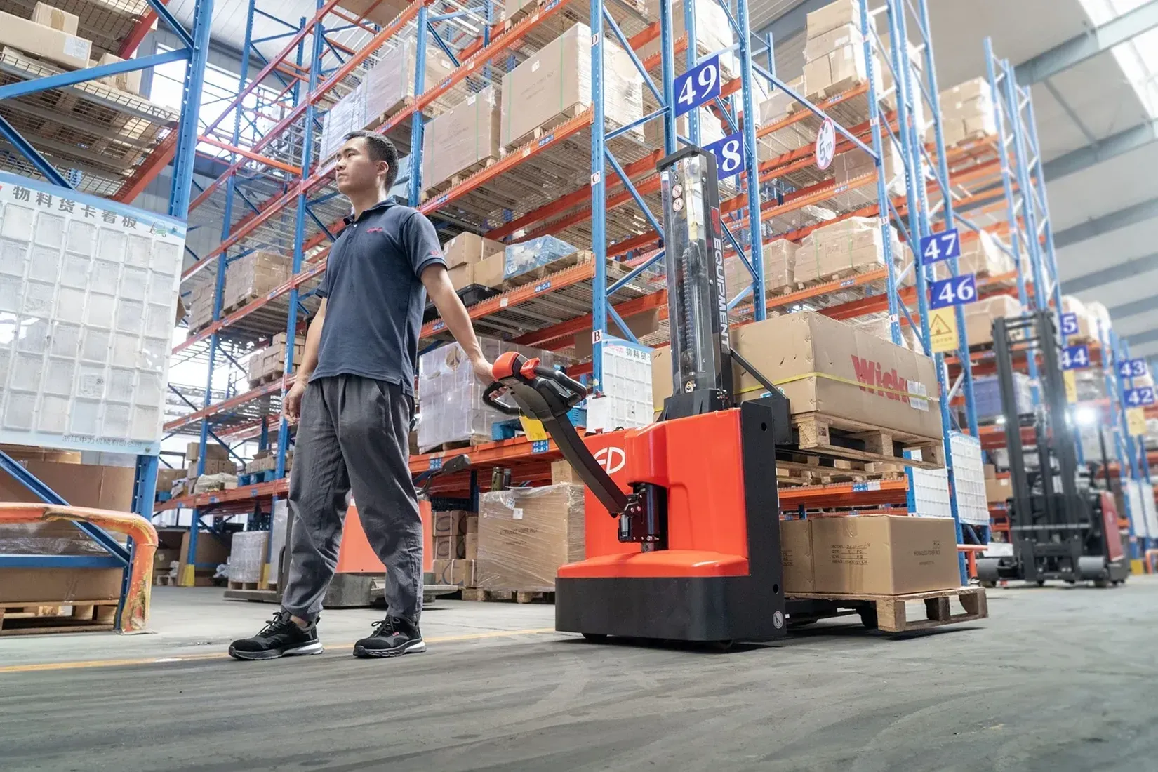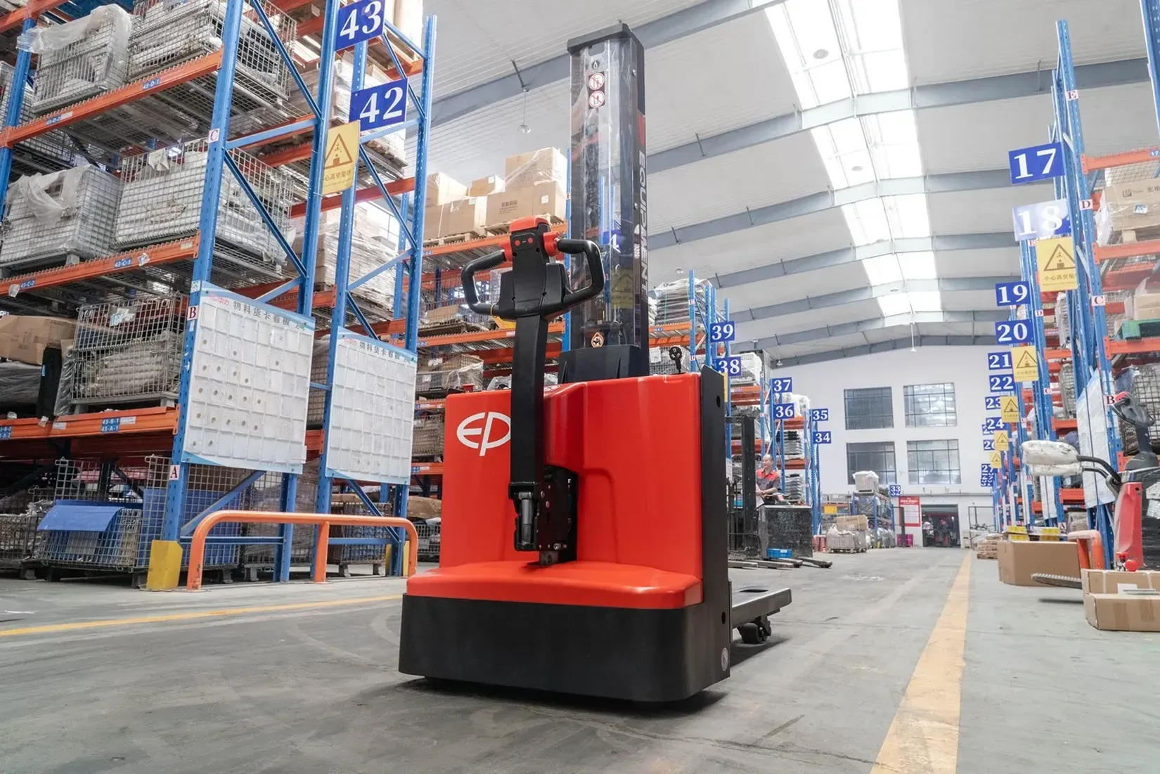 ESi161 je električni pešački viljuškar sa litijumskom baterijom i nosivošću od 1.6 tona, idealan za zadatke dvostrukog slaganja niskog i srednjeg intenziteta. Ovaj model se izdvaja po izuzetnoj preglednosti – zahvaljujući mono stubu i providnoj zaštitnoj ploči, operater ima jasan pregled vrhova viljuški, što omogućava precizno slaganje i sigurno preuzimanje tereta.