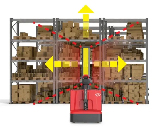 - Prikupljanje porudžbina: ESi161 se može koristiti i kao uređaj za prikupljanje porudžbina – operater može podići viljuške na udobnu visinu, što olakšava rad u kombinaciji sa tradicionalnim slaganjem.