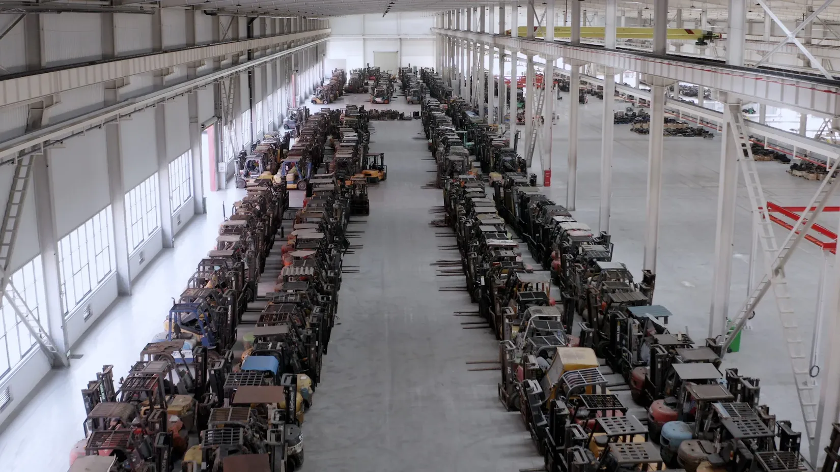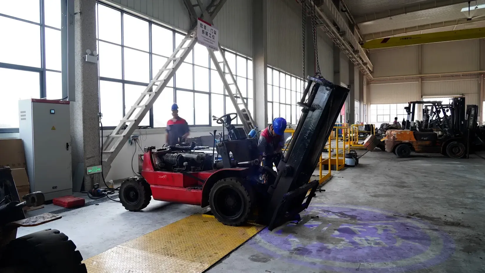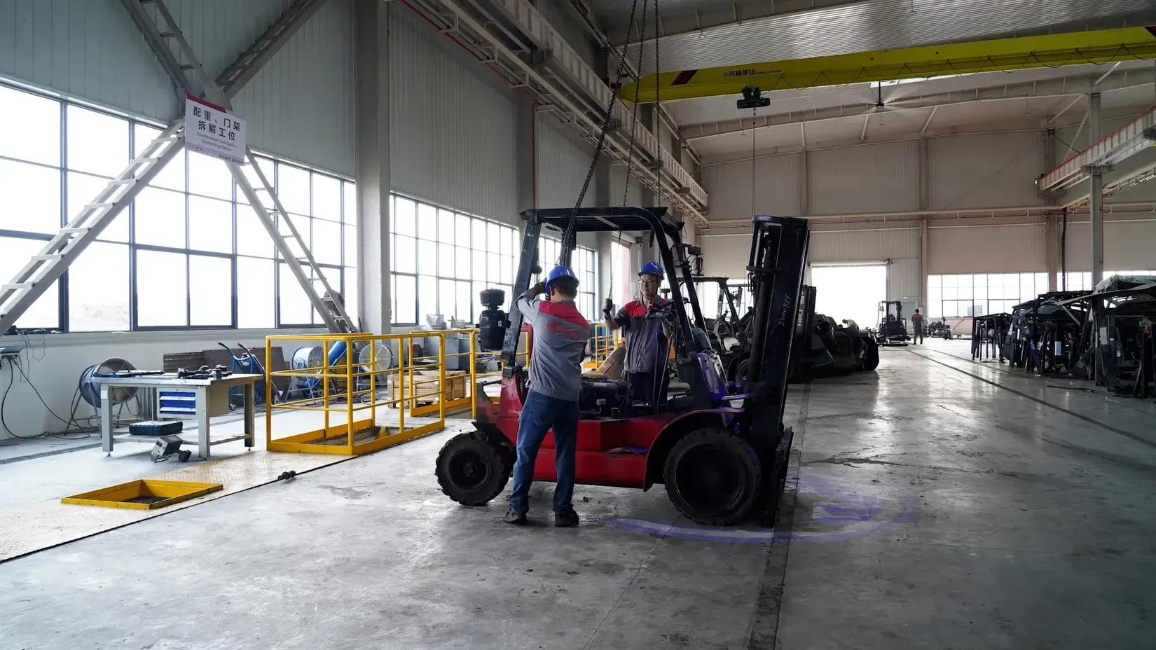 - Rastavljanje: Korišćeni IC viljuškari se rastavljaju, a ključni delovi poput šasije, protivteže i prednje osovine se sačuvaju za remanufakturu.