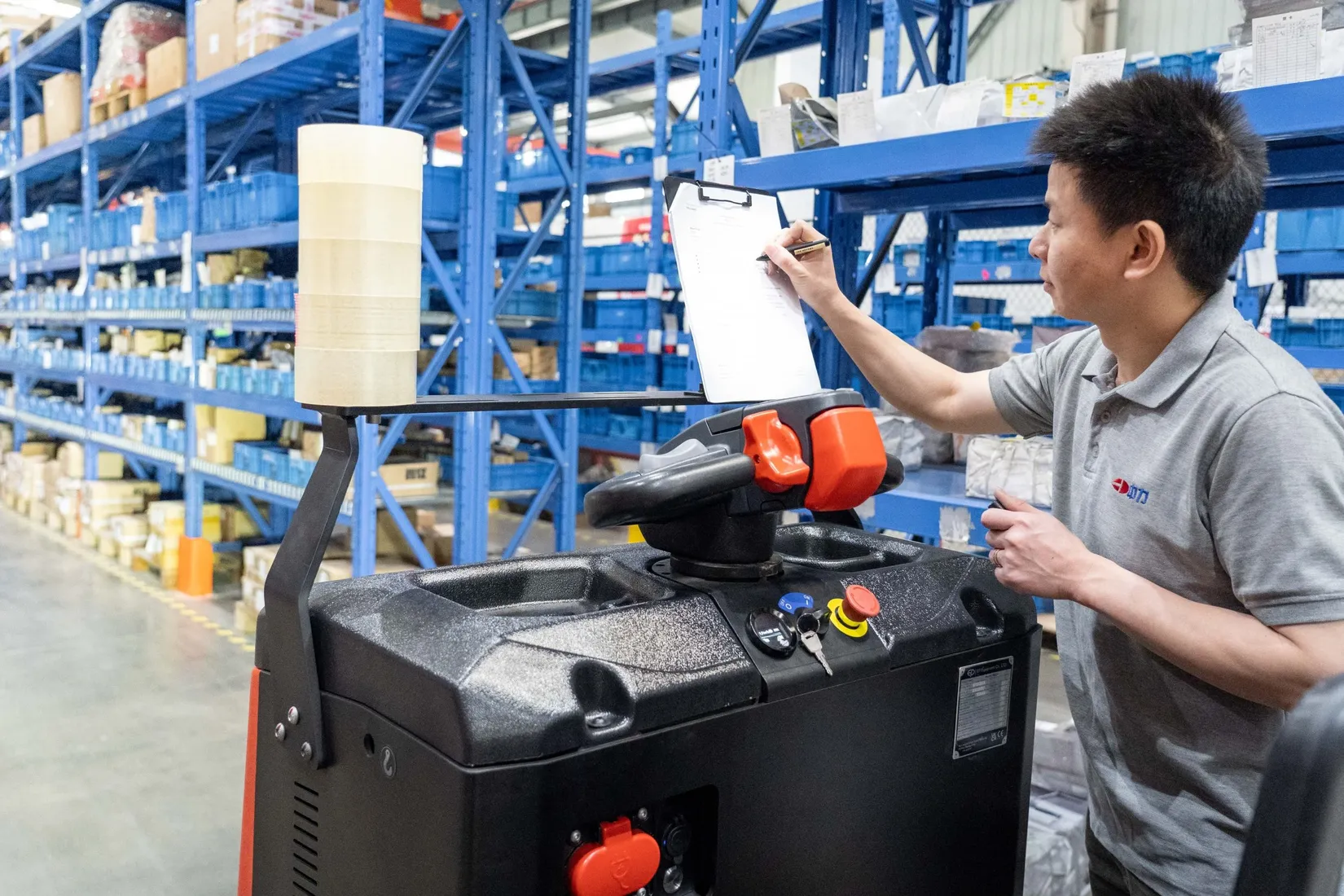 - Ergonomski dizajn: Opružena platforma sa niskim ulaznim pragom, naslon od pene i prostran radni prostor obezbeđuju udobnost rukovaocu, smanjuju zamor i podižu produktivnost tokom dugih smena.