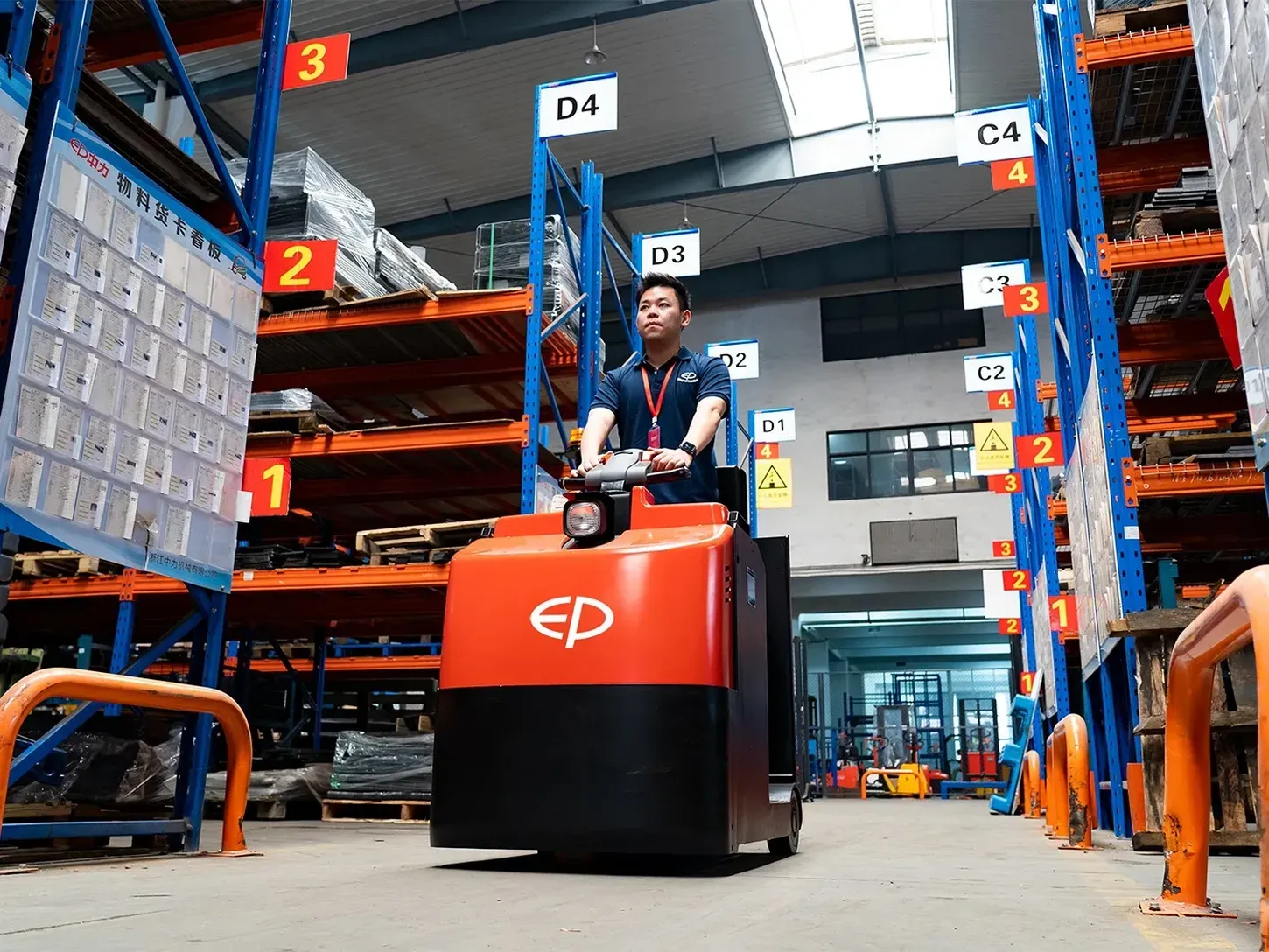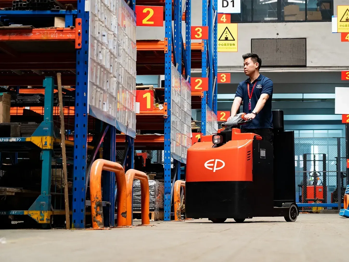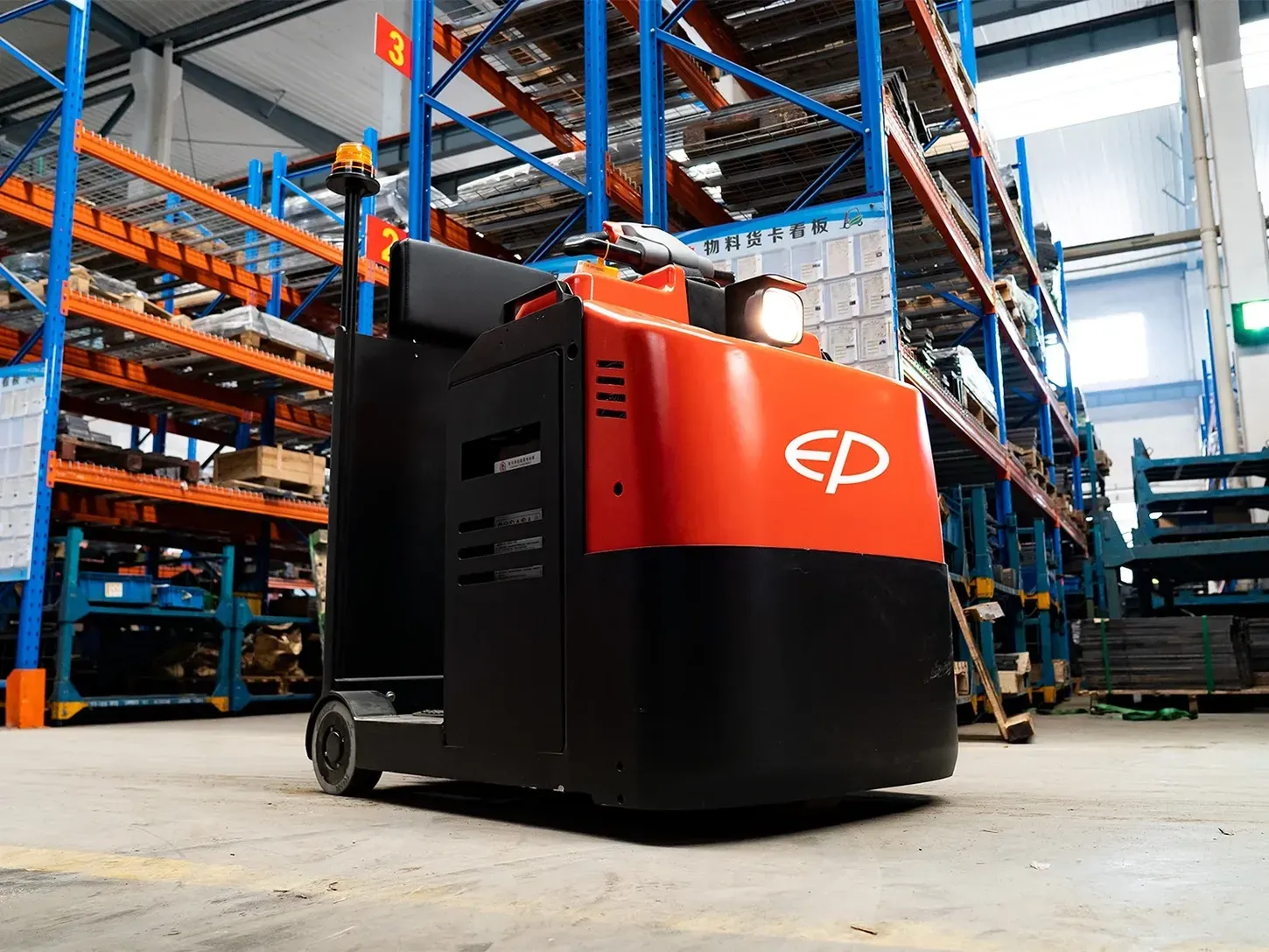 Električni vučni traktor QDD30S/QDD45S kompanije EP Equipment pokazuje svoju snagu na dužim rutama, gde je predviđeno da vozač stoji tokom upravljanja. Uglavnom se koristi u tzv. *milkrun* sistemima i za transport više kolica istovremeno.